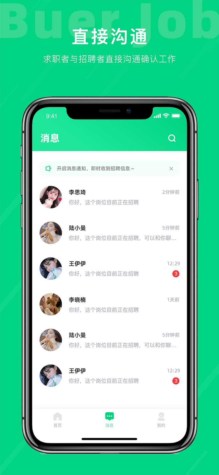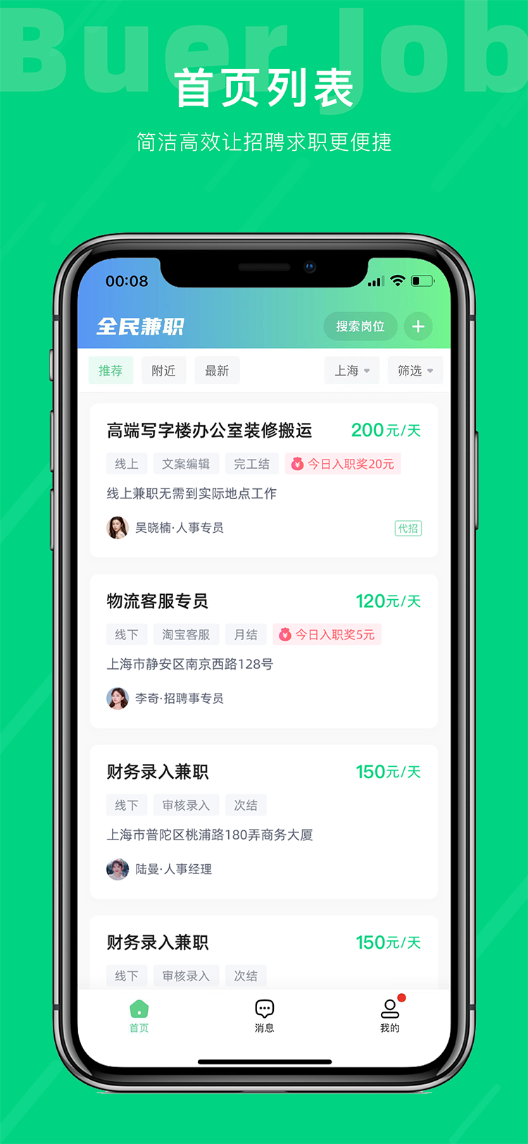 不二兼职独创一键岗位群发功能,无需低效率在人才列表页筛选简历,岗位群发价格低至1元/人,同时针对于求职者也设有简历一键群发,解决招聘与求职成本/效率不对等问题。目前不二兼职正在全速接入GPT,后期求职与招聘均可采用AI智能聊天,确认求职与招聘需求后再进行入职管理。